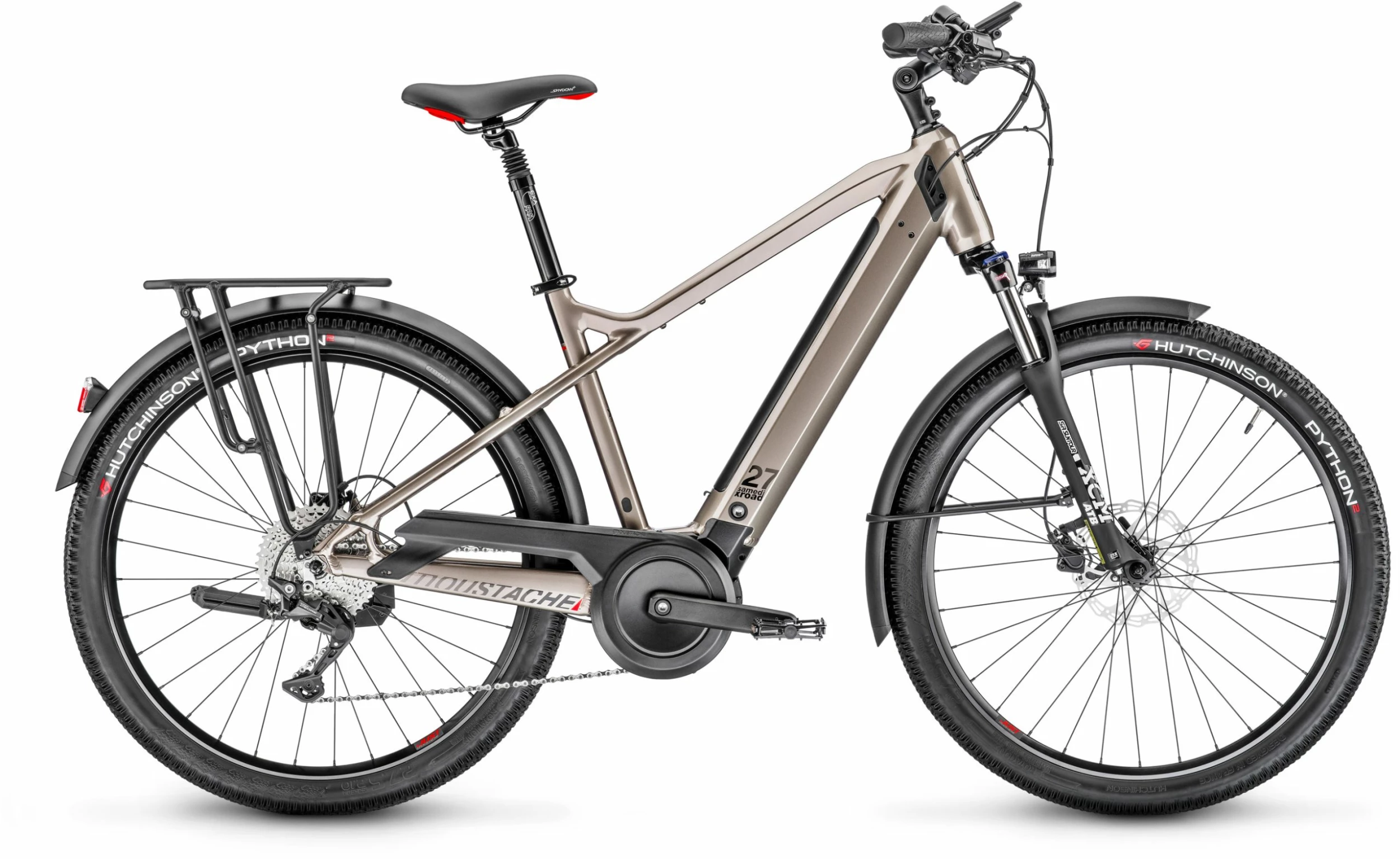 Roues | jantes Moustache, asymétriques, aluminium 6061E, soudées, 32 trous, 27.5″, largeur interne 23mm avec moyeux Avant : Shimano, 32 trous, 9x100mm, serrage rapide // Arrière : Shimano, 32 trous, 9x135mm, serrage rapide |
