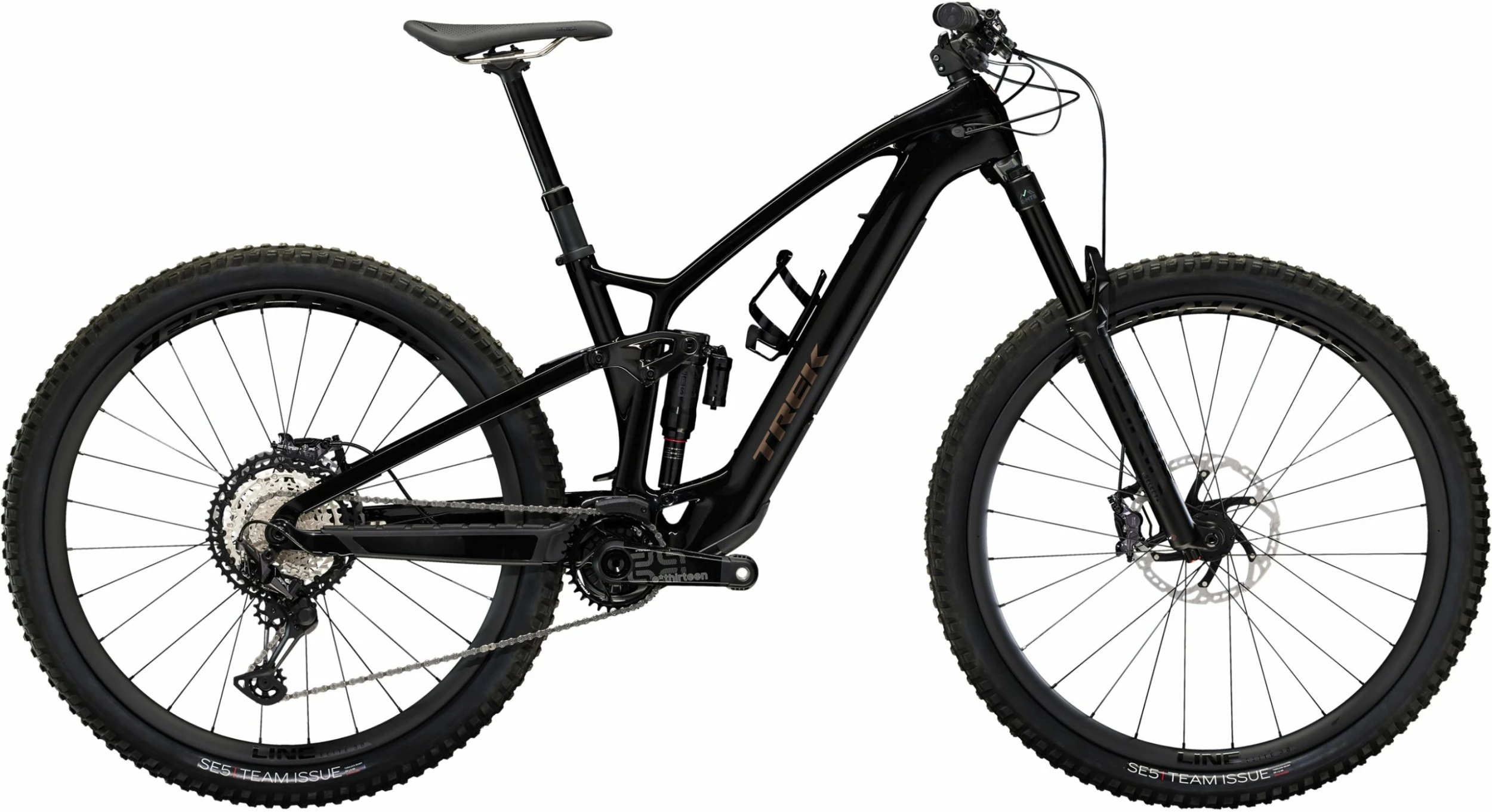 Cadre | OCLV Mountain Carbon, batterie amovible, acheminement interne des càbles, basculeur en alliage, tube de selle de 34,9 mm, fixation supérieure de guide-chaàne, ligne de chaàne de 55 mm, Mino Link, ABP, Boost148, UDH, débattement de 140 mm ; |